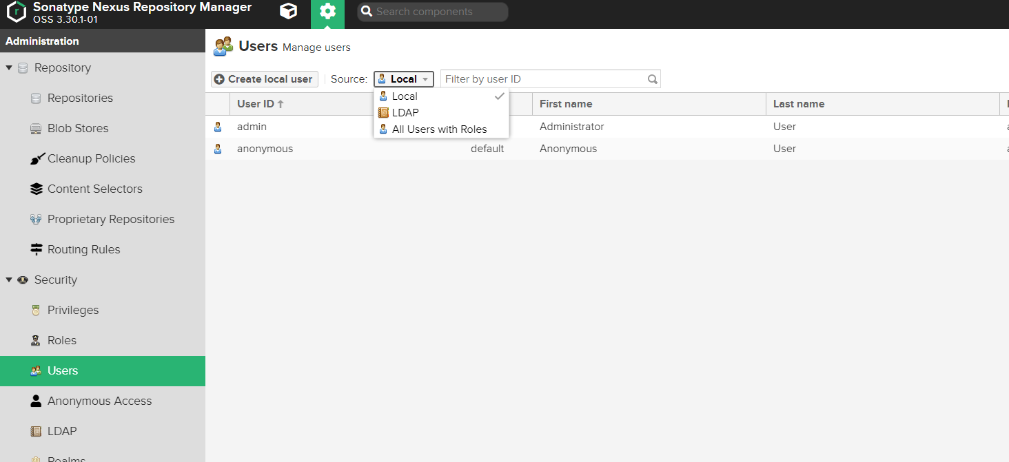 Nexus创建的用户或LDAP的用户,需由管理员分配角色。