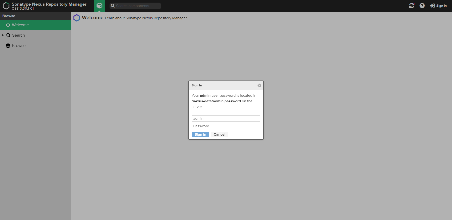 admin的初始化密码位于/nexus-data/admin.password,可在共享存储路径下查看admin.password文件。
