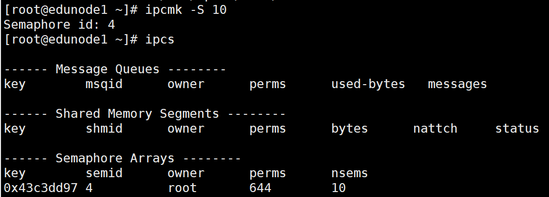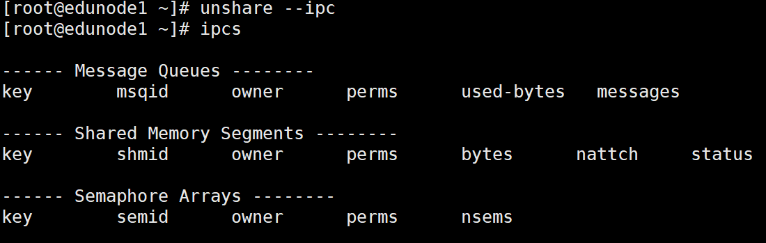 - 创建一个新的IPC Namespace,然后查看ns中的信号量