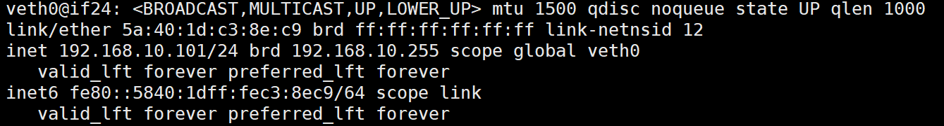 ip netns exec ns1 ifconfig veth1 192.168.10.101/24 up