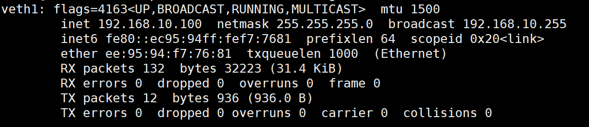 ip netns exec ns1 ifconfig veth1 192.168.10.100/24